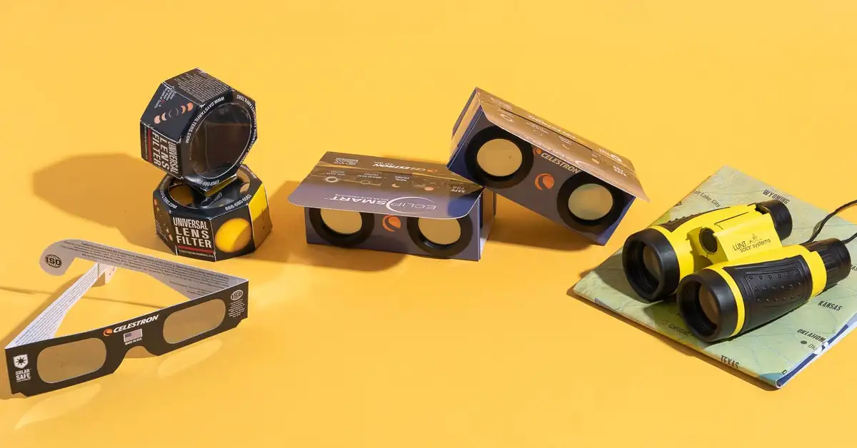 - Eclipse viewing glasses certified for direct viewing